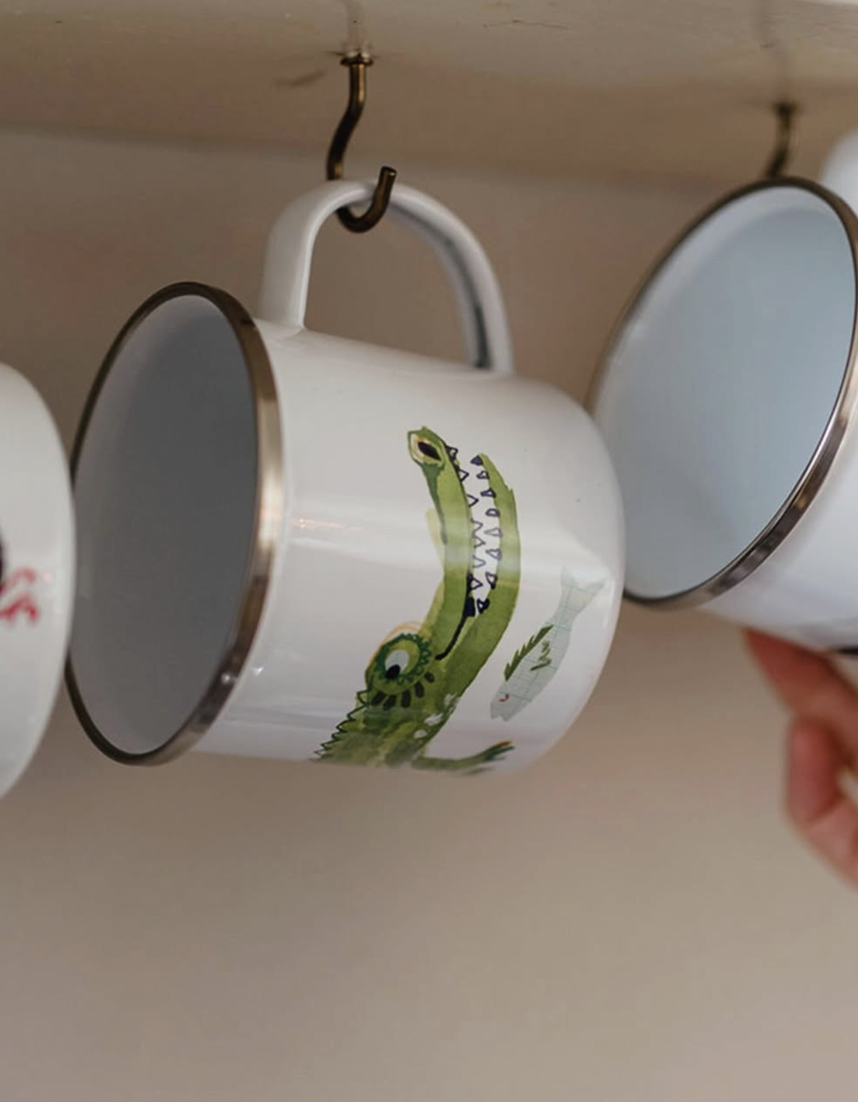 Enamel mugs are sturdy and lightweight, making them perfect for camping trips and big walks. Our enamel mugs in store are illustrated by Esther Kent and come in a range of wholesome designs.